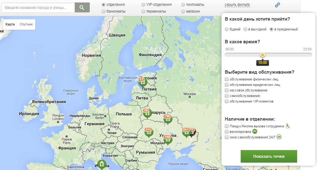 Как узнать график работы нужного нам отделения ПриватБанка через интернет